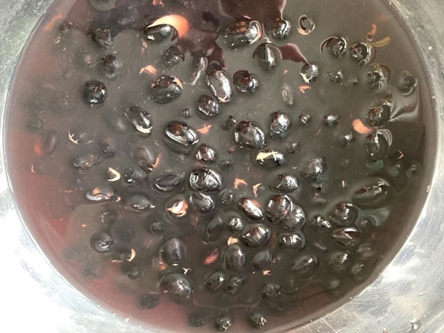 黒豆はよく洗って深くて大きな鍋やボウルに入れ、水に24時間つけて戻しておきます。