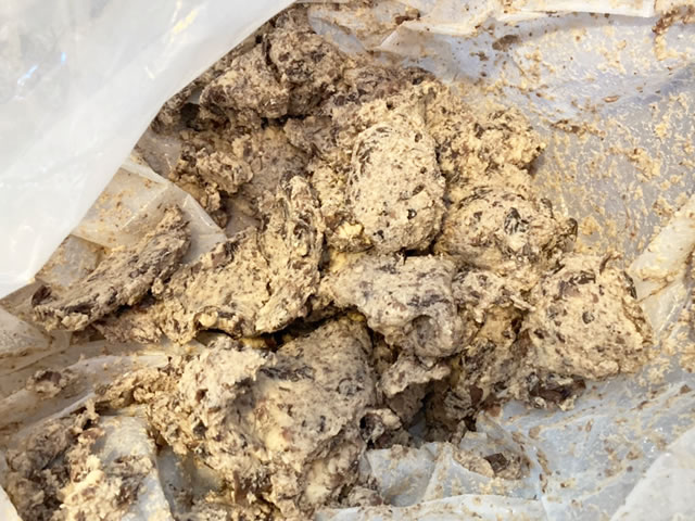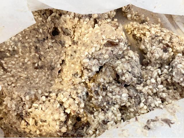 まとまりにくいようなら、取っておいた黒豆のゆで汁を少しづつ足してしっとりするまで混ぜます。