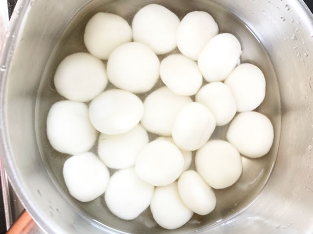 団子をたっぷりの熱湯に入れて茹でます。