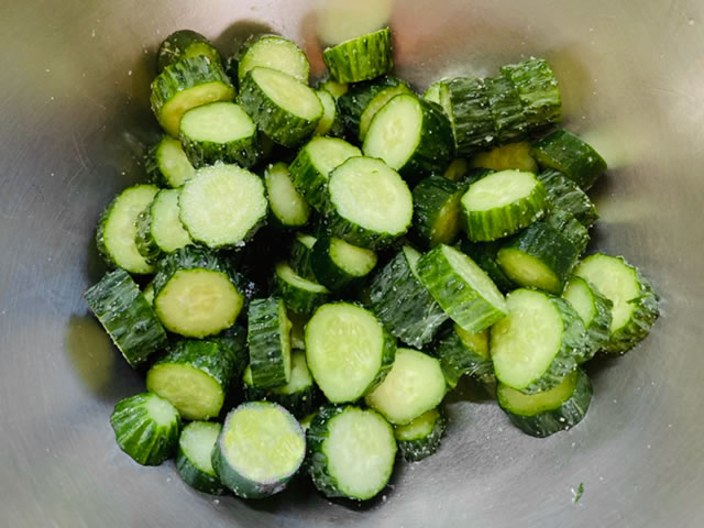 ポイントはきゅうりの水分をぎゅーっと絞ること!