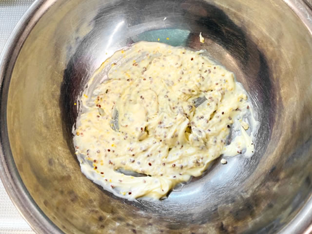 そして、マヨネーズと共に使うのは冷蔵庫に余りがちな「粒マスタード」♪
