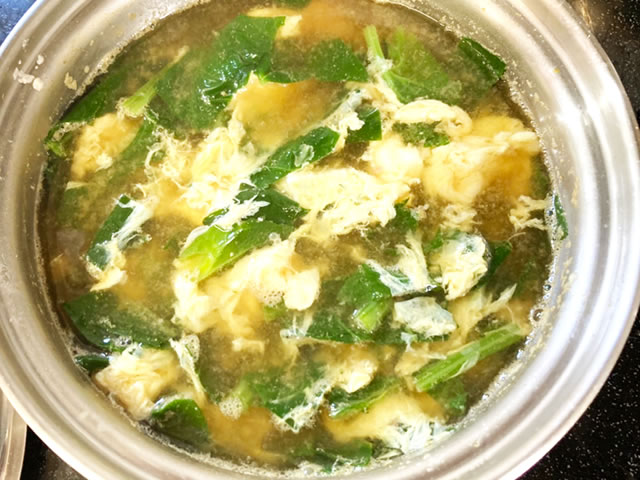 こちらはほうれん草と卵のお味噌汁。卵はどんな食材とも相性が良いので、とても使いやすくおススメです!