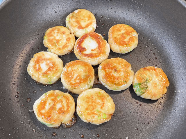 また、お餅の生地にはネギと鰹節が入っているので、味付けの調味料は少量でも大丈夫です♪