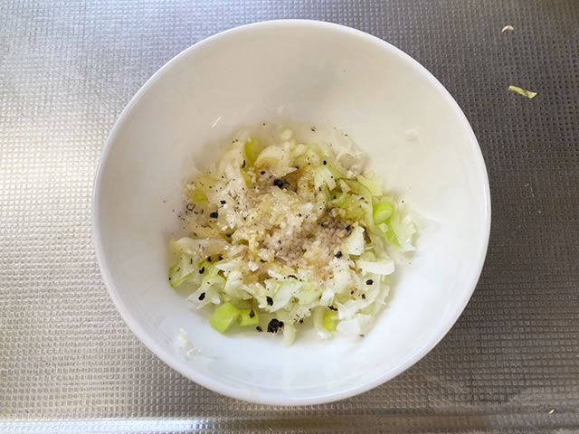 ねぎはみじん切りにして、調味料と一緒に全て混ぜておきます。