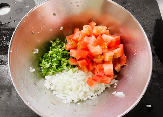 ピーマンとトマトもみじん切りにしておきましょう。