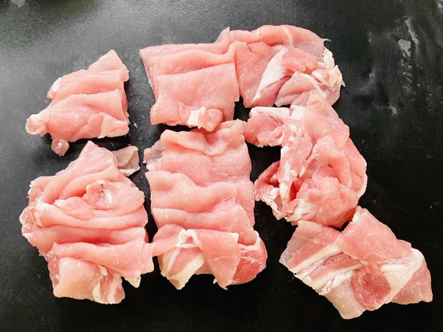 豚肉は食べやすい大きさに切り、調味料は全て合わせておきましょう。
