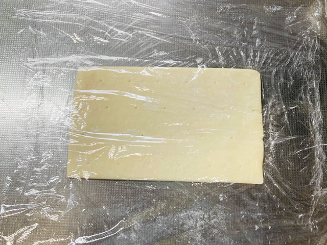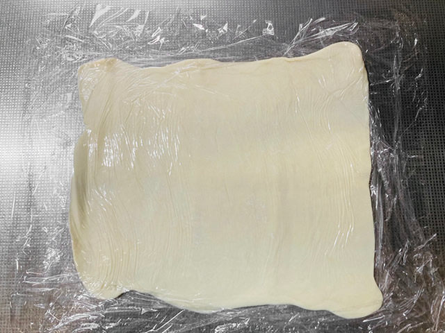 ラップで挟んでお好みの厚さに伸ばします。