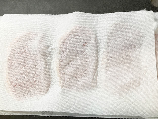 キッチンペーパーで抑えることでドリップを取り除きましょう。