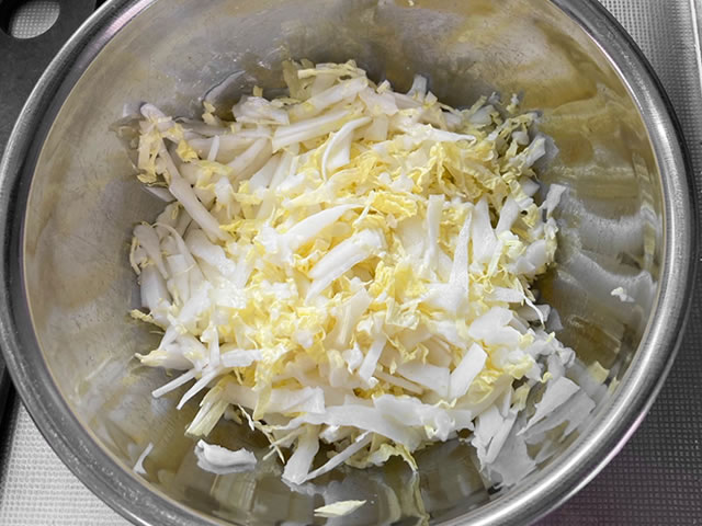 - 白菜の水気をきちんと切ること