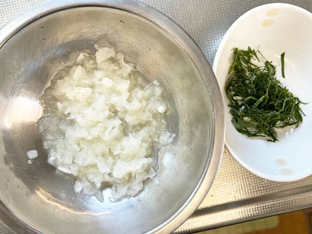 大根と生姜はすりおろし、大葉は千切りにします。