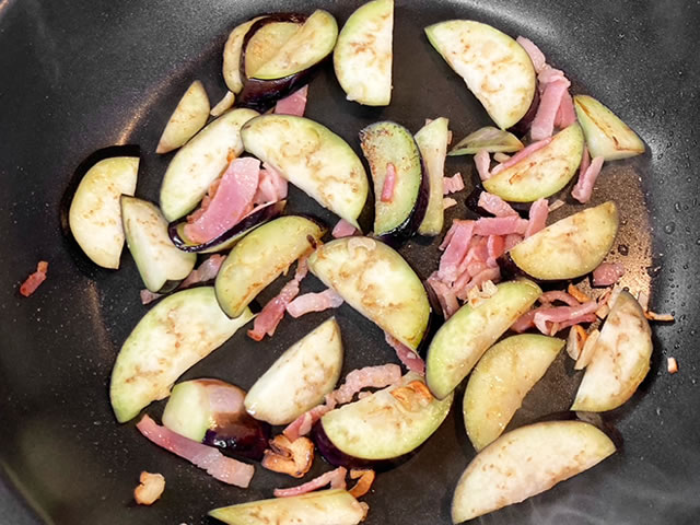 ナスとベーコンのバジル炒め