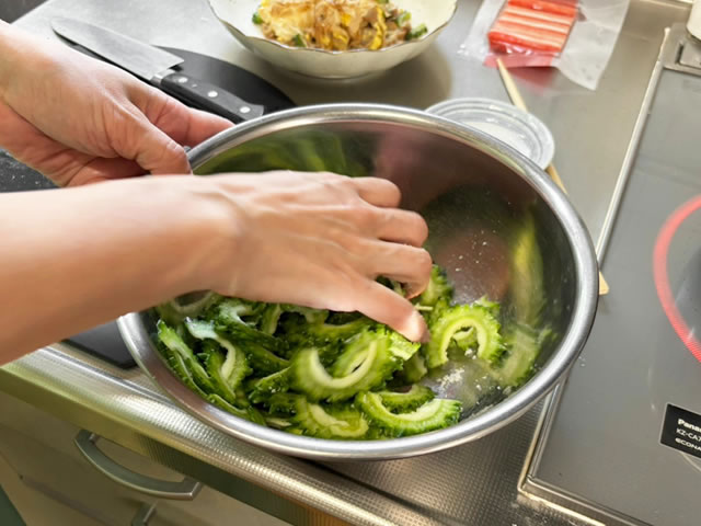 ゴーヤは茹でる前に砂糖と塩で揉みましょう!