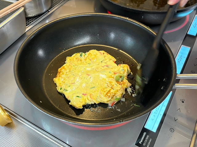 火を入れ過ぎないように注意しながら、ふわふわ卵を作りましょう!