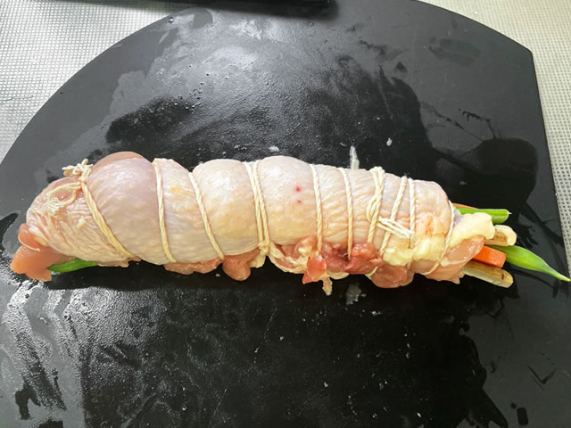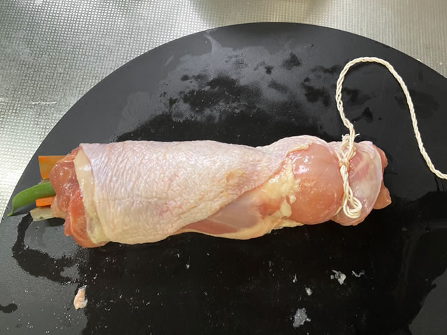 肉は加熱するとやや縮むので、タコ糸は少しきつめに巻きましょう☆