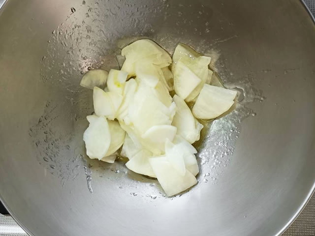 大根は皮を剥き、2ミリくらいの薄さでイチョウ切りにします。