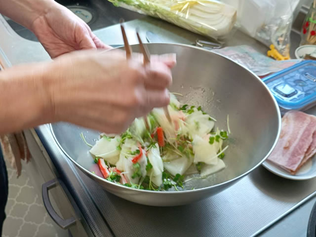 大根から水分を出したら、材料と調味料を合わせるだけ!
