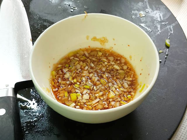 チヂミを焼いている間に、タレの準備しておきましょう。