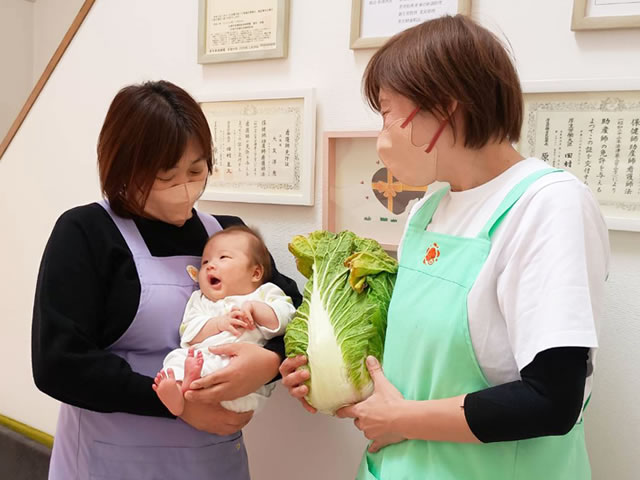 白菜と一緒にパチリ♪白菜見てちょっぴり笑ってくれました(^^)/