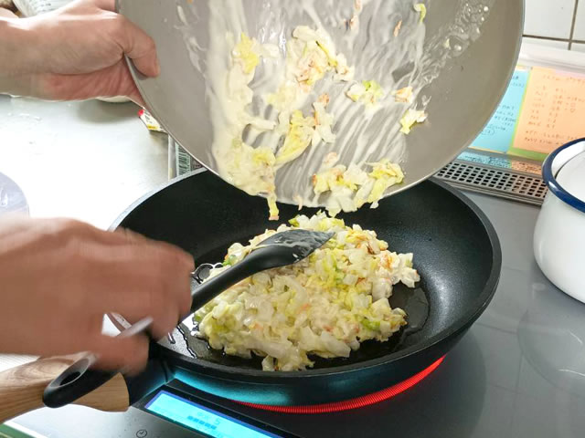 白菜の水分はしっかりと絞りましょう!