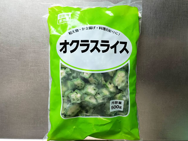 おくらはこちらの業務スーパーで手に入る冷凍オクラを使います♪半解凍くらいでも、作っているうちに溶けてくるので大丈夫ですよ☆