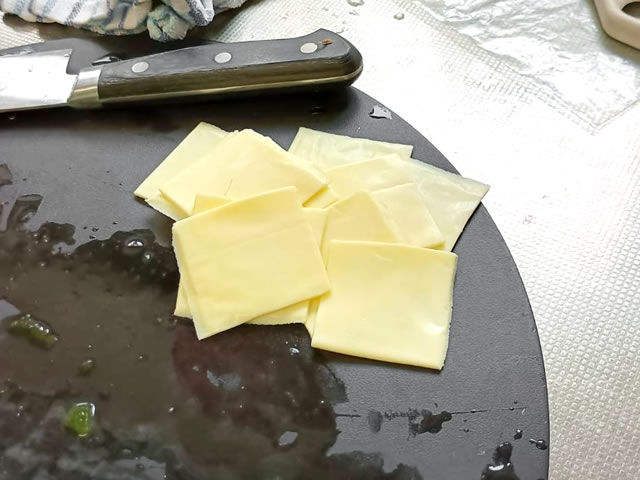 今回はスライスチーズを使っていますが、シュレッドチーズでも大丈夫です☆