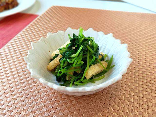 今回のレシピは「三つ葉と油揚げの和え物」です。