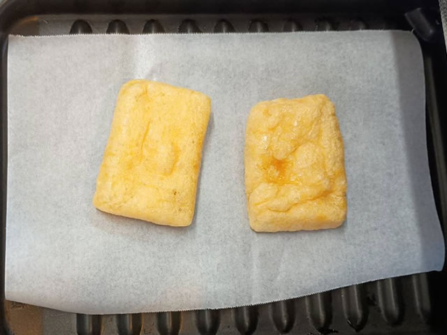 こんがり焼いて、ふわっとサクッとした油揚げに仕上げてくださいね♪