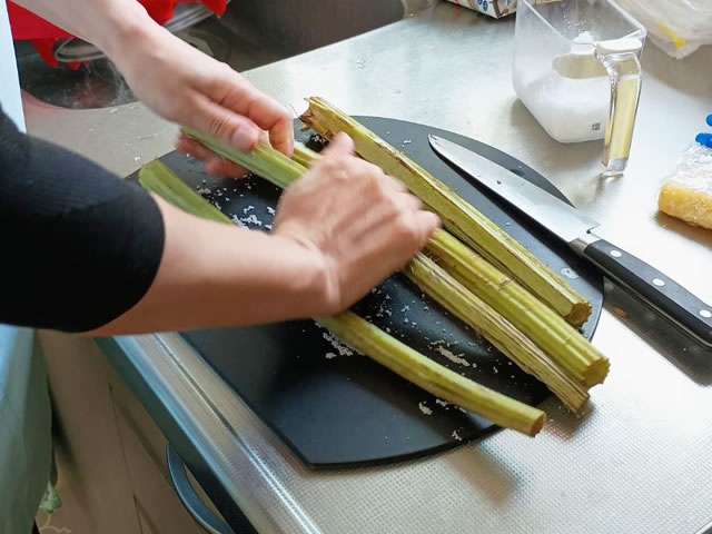 皮だけでなく、筋も丁寧に取り除きましょうね。