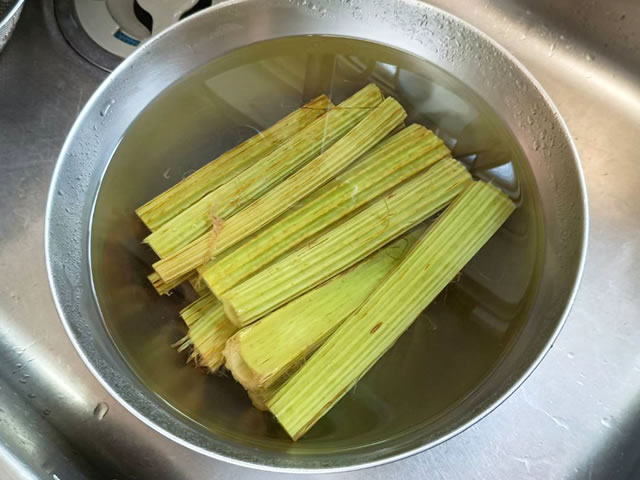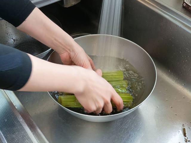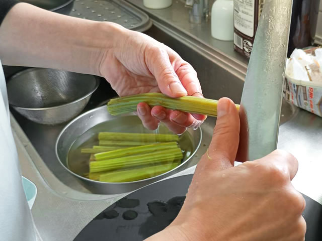 フキを軽く洗っておきましょう。