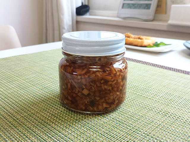 食べる生姜の粗熱を取ったら、消毒した瓶に詰めて出来上がり~♪