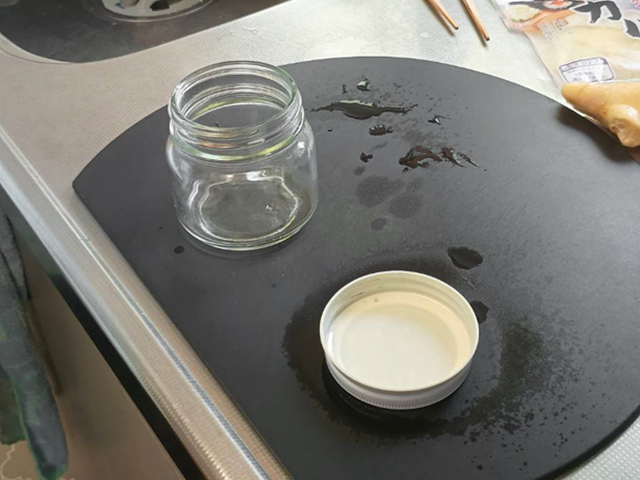 保存用の瓶を消毒しましょう。瓶の消毒はしっかり洗った瓶にアルコールスプレーを吹きかけて拭くだけでオッケーです♪