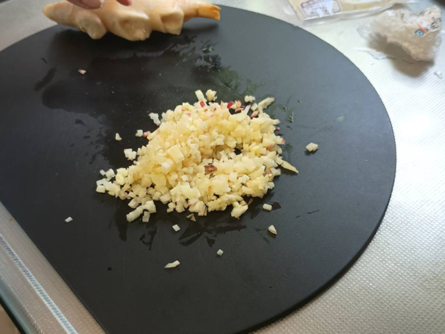 生姜は良く洗った後、みじん切りにします。