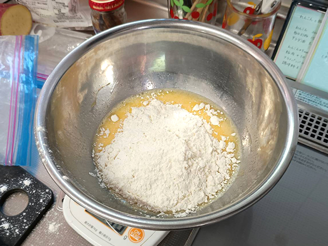 ホットケーキミックスを入れます。