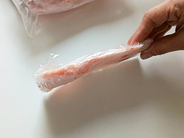 - ラップでしっかり包んだらフリーザーバッグに入れる
