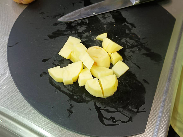 じゃがいももだいたい1.5センチくらいにカットします。