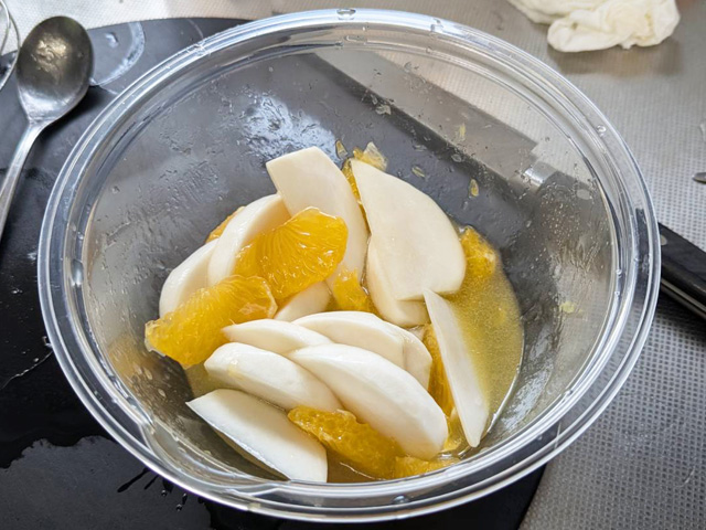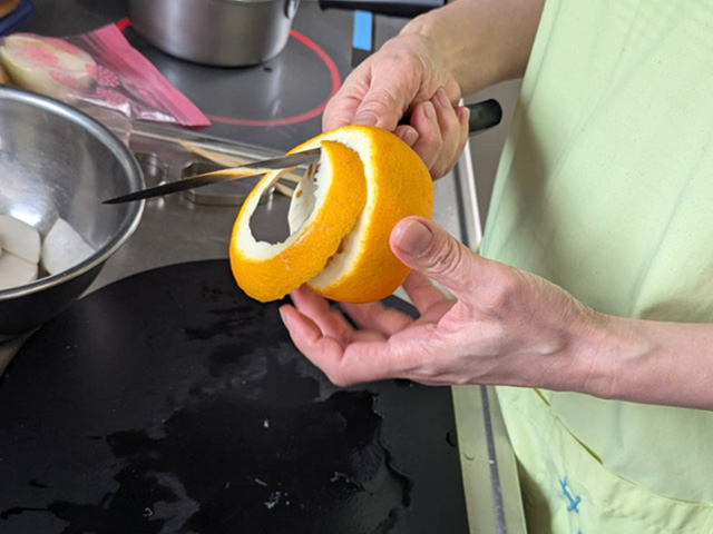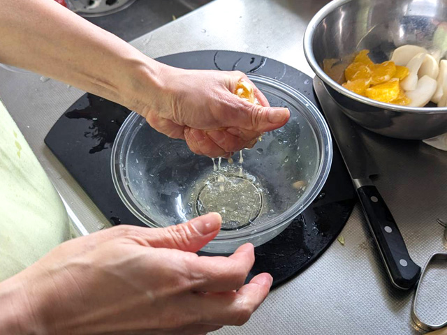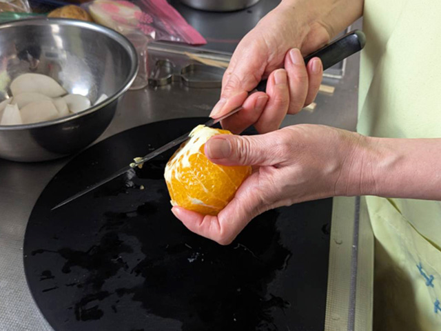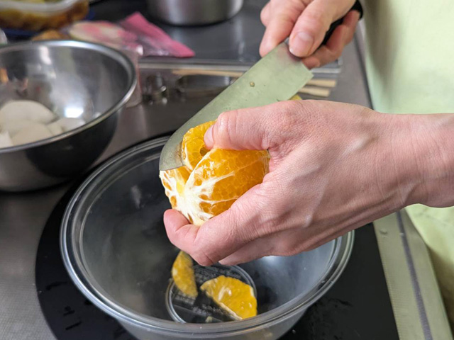 かぶの水分を出している間に、はっさくの準備をしましょう。