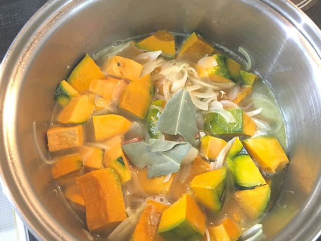 かぼちゃが柔らかくなるまで煮ましょう。