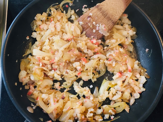 きつね色になるまで炒めましょう。カリっサクっと油で揚げた時のような食感になればOKです。