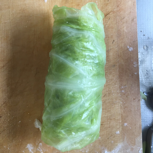 キャベツが一枚だとタネがはみ出たり、上手に巻けなかったりするので2回巻くのがおススメ。