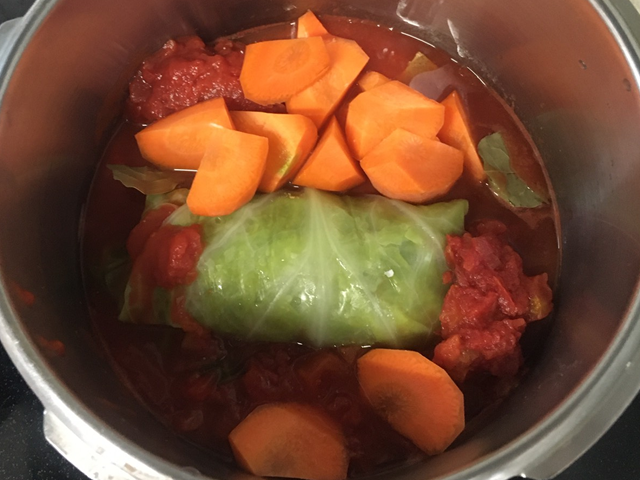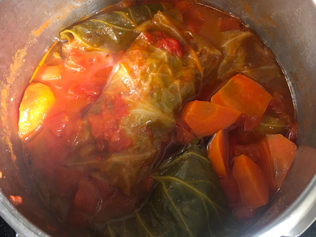 キャベツを巻いた状態で冷凍しておけば、あとは煮込むだけ。