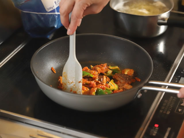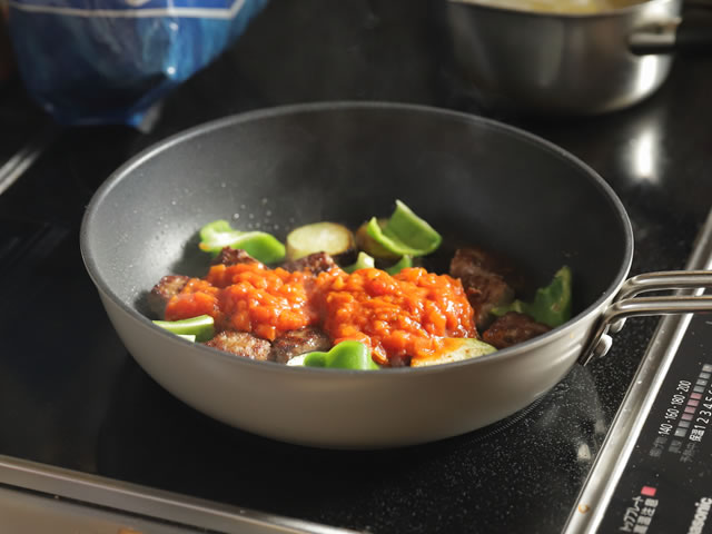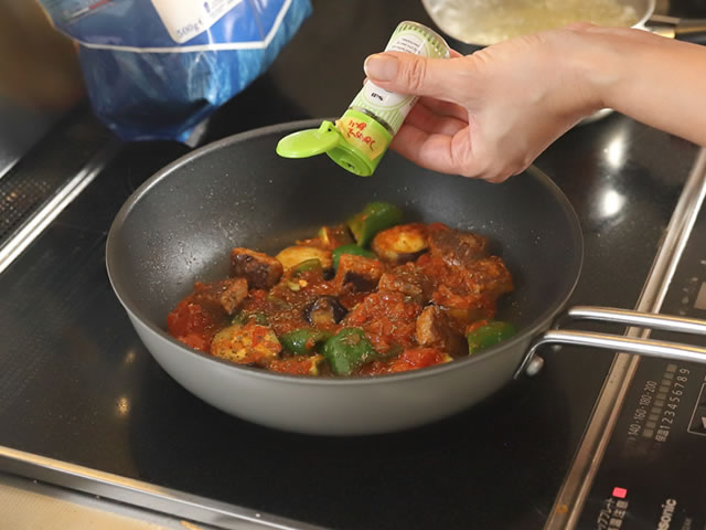 トマトソースを入れます。