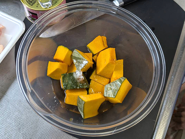 かぼちゃは調味料と一緒に電子レンジで簡単調理♪