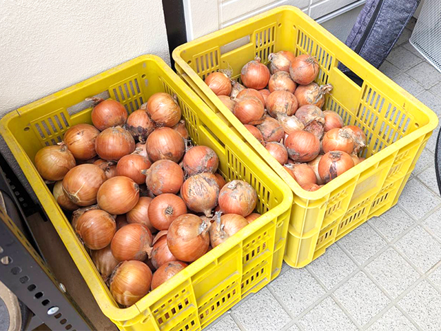 実は昨年、お客さまからたくさんの玉ねぎをいただいていましたので、そのたまねぎを使わせていただこうと思います♪