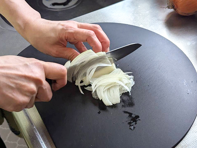 スライサーを使うと簡単に玉ねぎを薄くカットできるので、お持ちの方は使ってくださいね♪